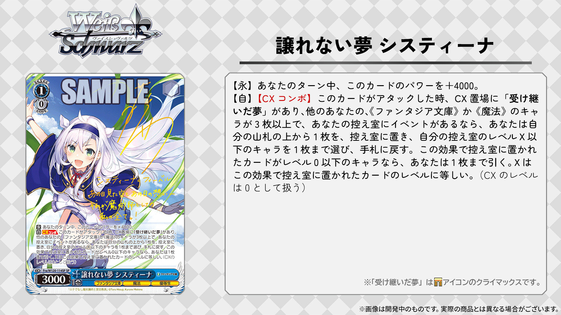 このパックに収録のカードは全て「F(大文字)+〇〇(小文字)/」で始まるカード番号となり、「富士見ファンタジア文庫」としてデッキを組むことができます。